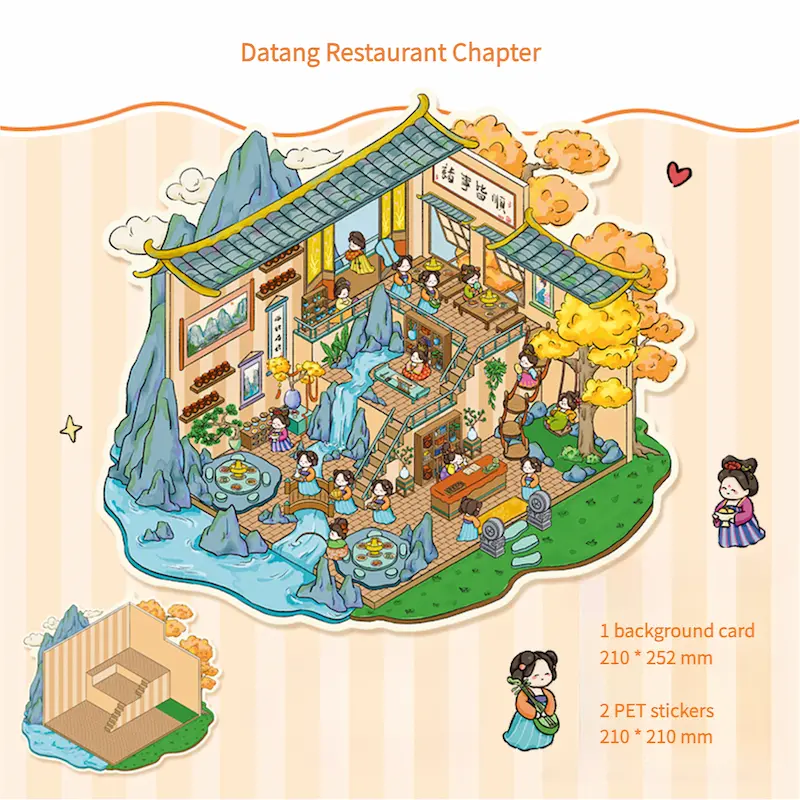 Step into a world of rich cultural heritage with our 3D Stickers – featuring two captivating themes: the Datang Restaurant Chapter and the Leisure Temple Chapter. These high-quality 3D stickers let you create your own miniature worlds, each capturing the essence of ancient Chinese history and architecture.
