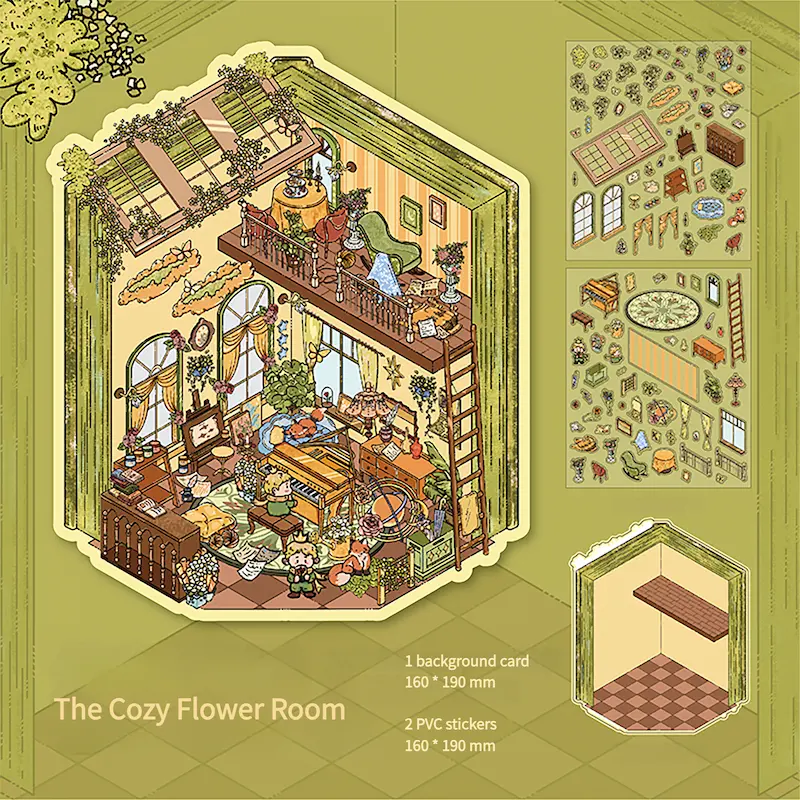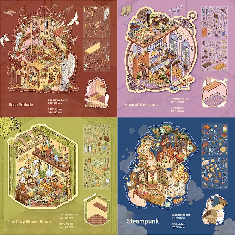 • Miniature Sticker Rooms to Build and Explore: These beautifully designed 3D sticker sets allow you to create intricate miniature sticker houses and charming room scenes. Perfect for both beginners and experienced crafters, they offer endless possibilities to customize and arrange your own unique sticker world. Whether as a decorative display project or a fun hands-on activity, these sticker rooms inspire creativity and provide hours of engaging exploration.