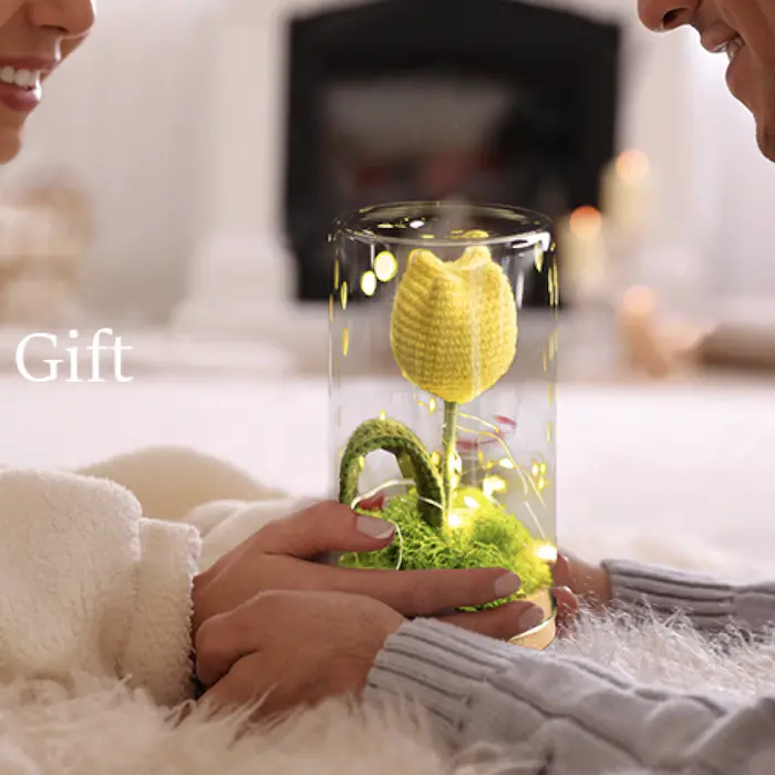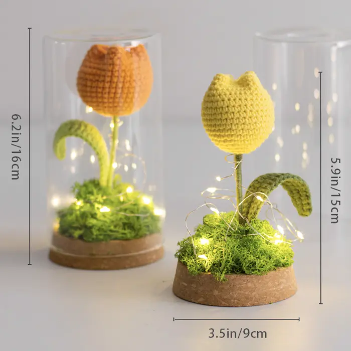 Warm LED Glow with 3 Modes: The soft LED lights come with three modes—steady glow, slow flash, and quick sparkle. Whether you’re enjoying a quiet moment or creating a festive vibe, you can adjust the light to suit the occasion. The warm illumination enhances the crochet tulip’s beauty while adding a magical touch to any room.