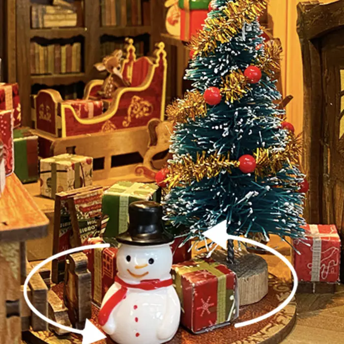 Celebrate the magic of Christmas with this beautifully crafted christmas miniature. Featuring a cozy library, gift boxes, and cheerful snowmen, it brings a nostalgic winter wonderland to your bookshelf.
