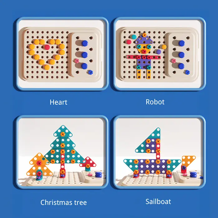 Creative Building & Spatial Development: By combining gears, screws, and plates, children practice spatial awareness, logical thinking, and creativity. Every completed structure brings a sense of accomplishment, encouraging kids to experiment with new ideas and problem-solving strategies.